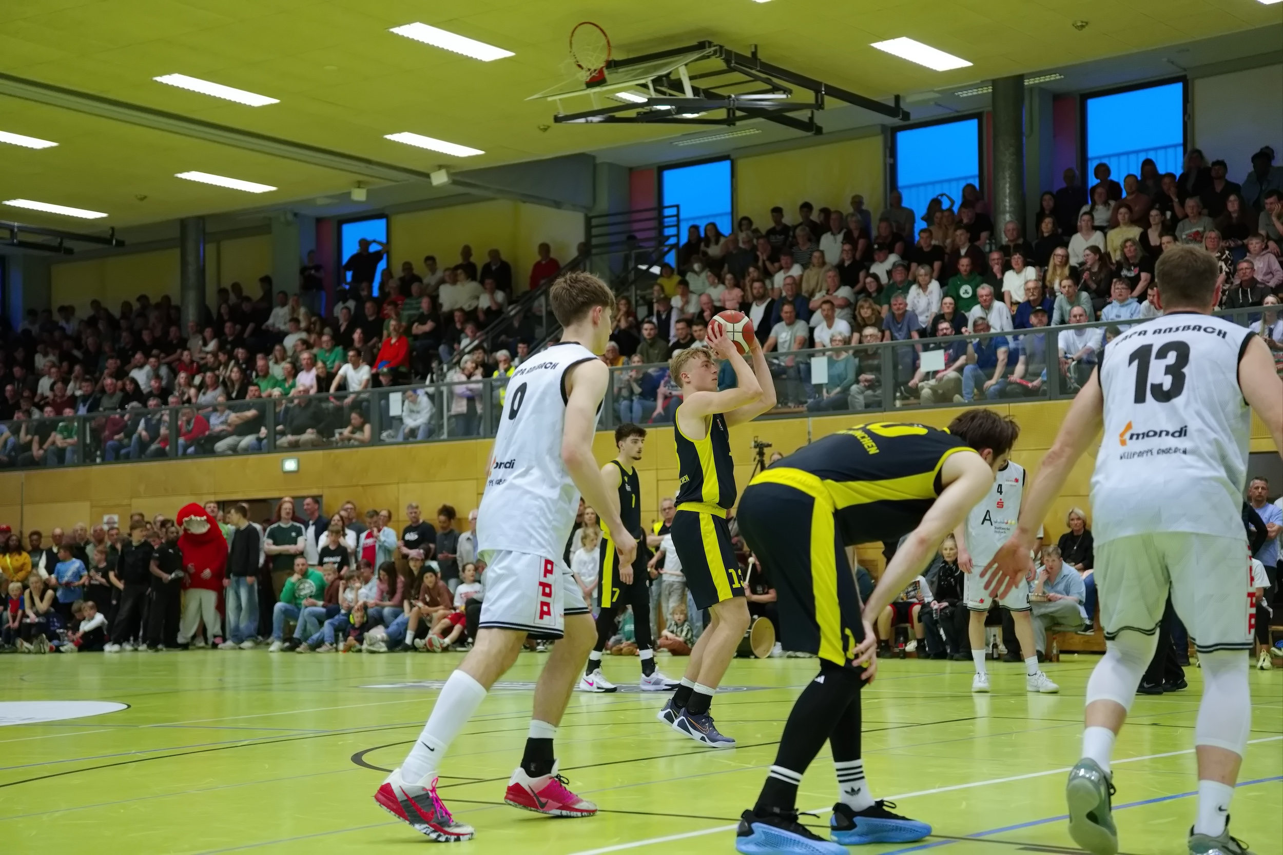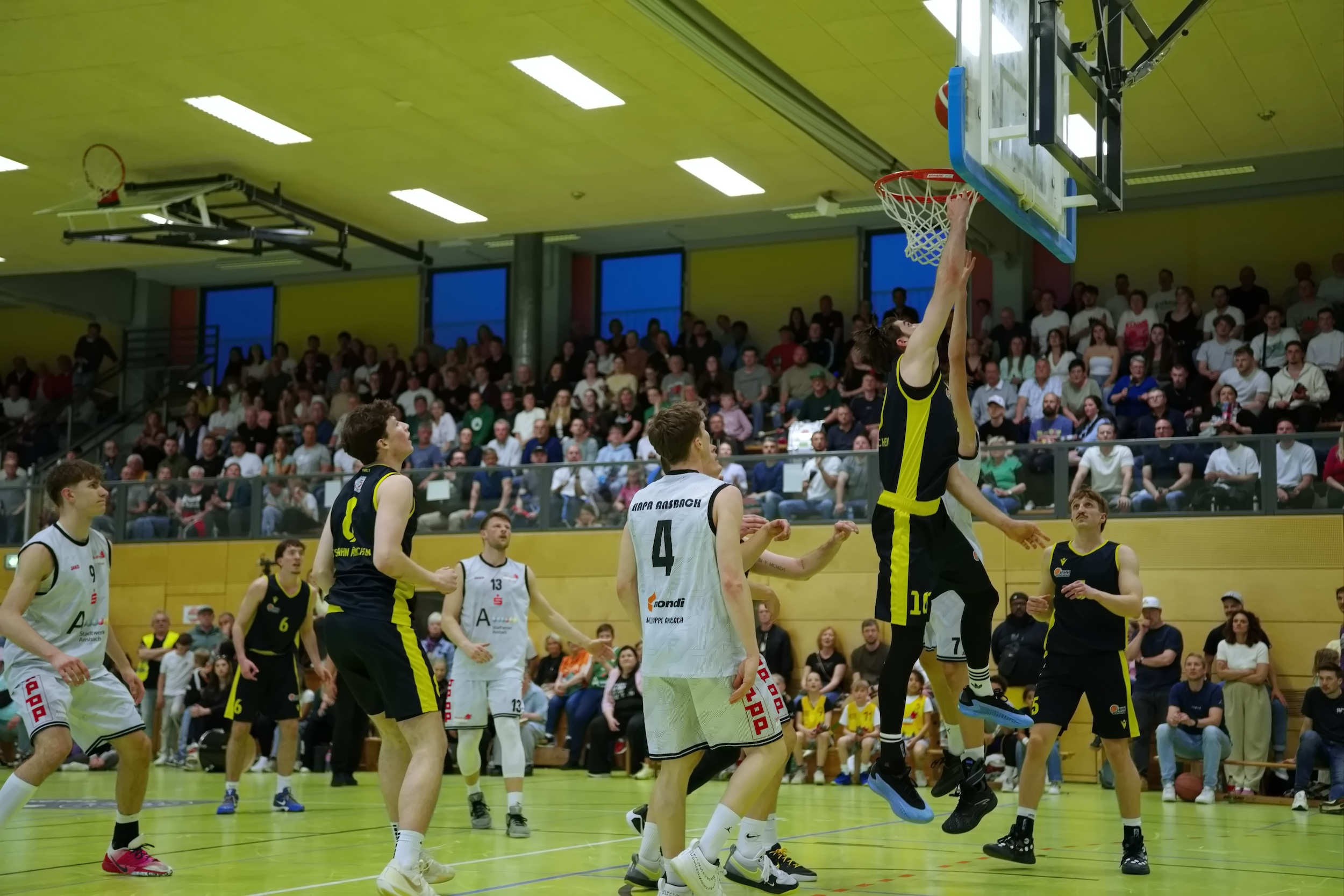 Vor rund 800 Ansbachern und gut 80 mitgereisten Fans entspann sich ein würdiges drittes Halbfinale. Nach einer starken ersten Führung der Gäste, die sowohl aus der Distanz als auch am Korb erfolgreich waren, kamen die Hausherren in Schwung und es gestaltete sich eine ausgeglichene Partie. Vor allem die jungen Jahnler hielten ihre Mannschaft im Rennen, während bei den Mittelfranken die Routiniers wichtige Punkte erzielen konnten.
