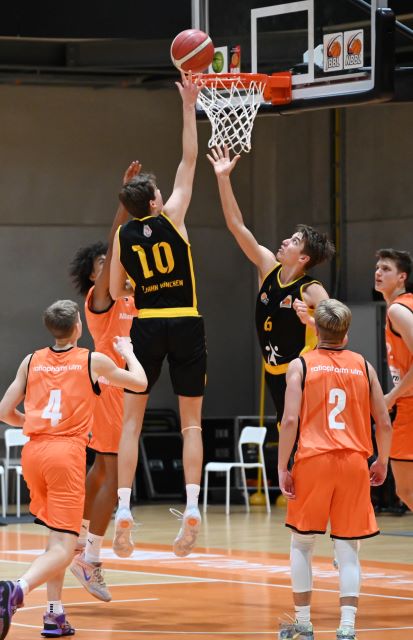 Dass man in der Gruppe Süd immer nur einen Aufstiegsplatz ausspielt, weil der andere praktisch fest an die Ulmer vergeben ist, daran kann man sich nur schwer gewöhnen, aber die Liga und die DBB-Jugend sind offenbar desinteressiert an dieser speziellen Lage im fernen NBBL-Süden. Also macht man das Beste daraus und nimmt die Matches gegen die überqualifizierten Ulmer als Testspiele (ein wenig Neid schwingt natürlich auch mit: auf das schicke Leistungszentrum und auf die breitgefächerte, professionelle Förderung der sehr weit enteilten Konkurrenz…).