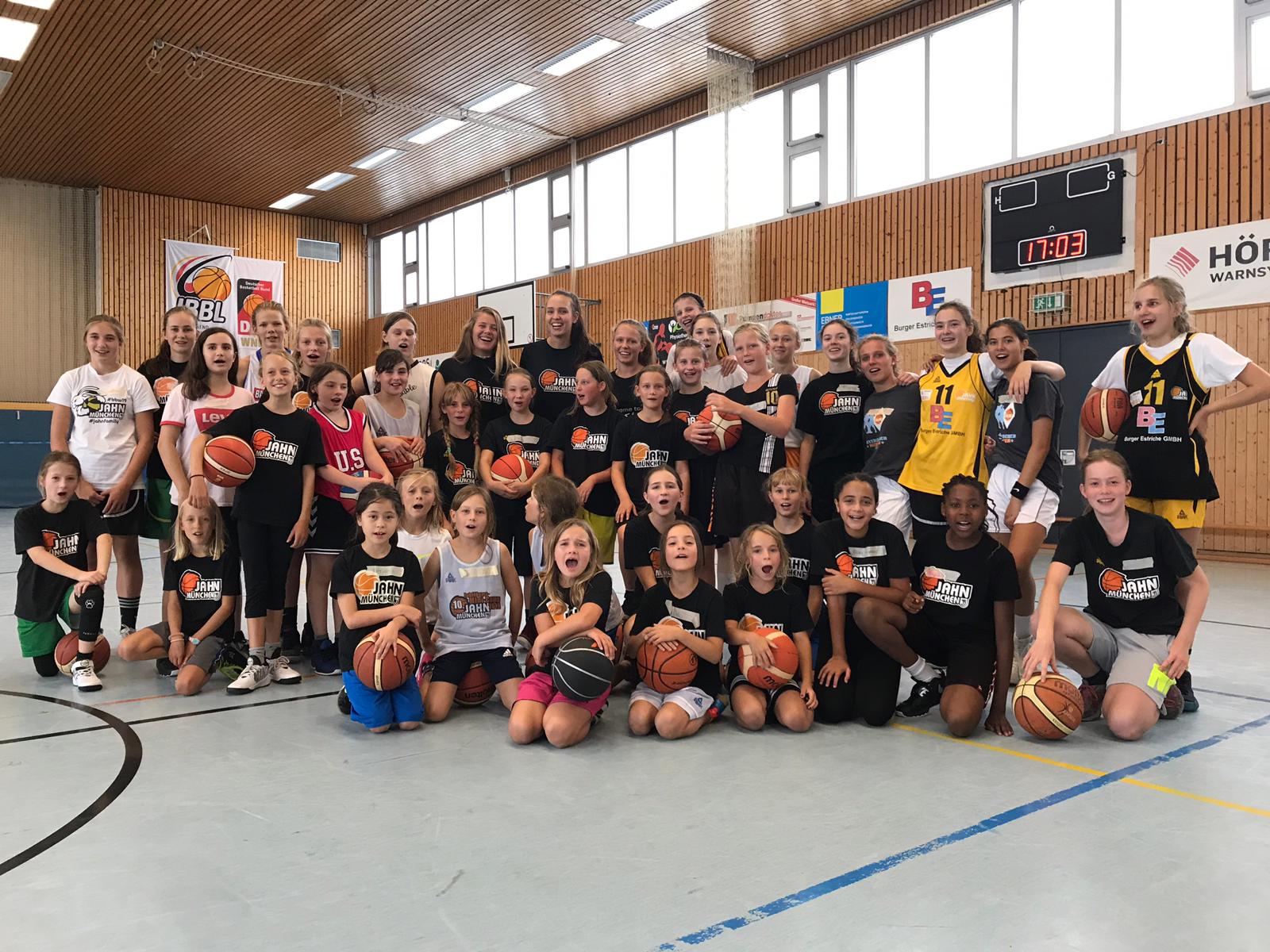 Neben Fangspielen, Stationstraining mit den Damen der Bundesliga und natürlich Basketballspielen sollten sich am Montag vor allem die Kinder untereinander, wie auch die Damen kennenlernen.