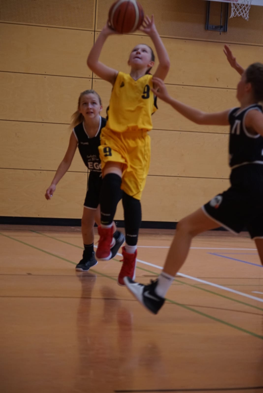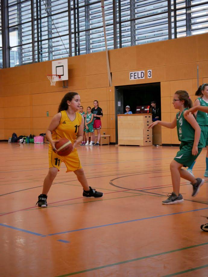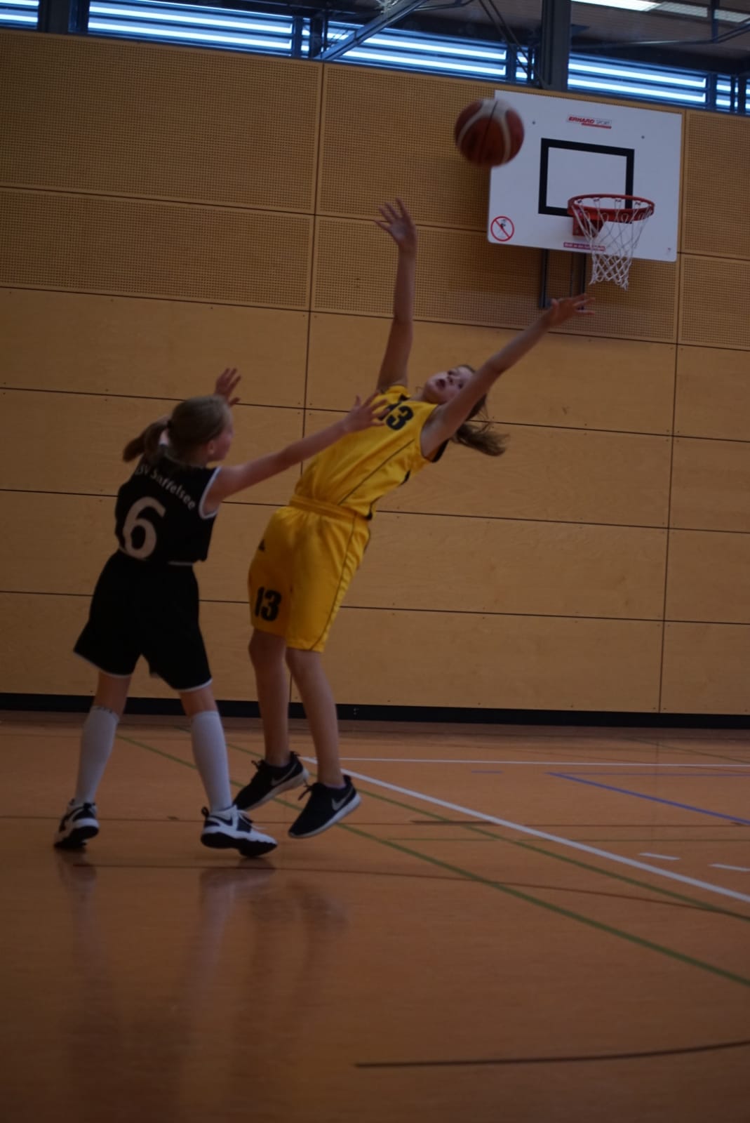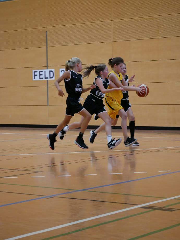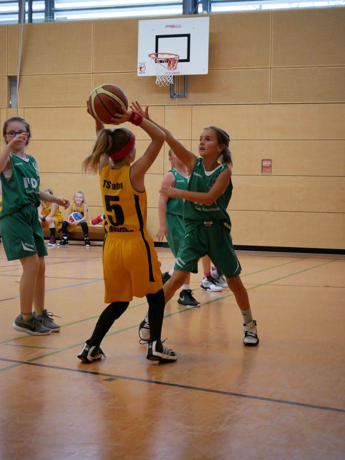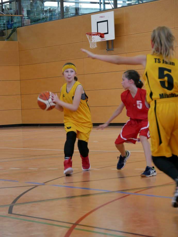 5 weibliche u12 Teams traten an und im ersten Match ging es gleich gegen den Gastgeber, die sogenannten "Hellgirls". So traten sie auch auf, bissig und kämpferisch, was unser Team erstmal ein bißchen überraschte. Die Hellenen gingen in Führung, wir konnten uns in den zweiten 10min aber herankämpfen und, eingeleitet durch lange Pässe von Sophie, durch zwei gut gespielte Fastbreaks 11:6 gewinnen. Aber diese ersten 20min kosteten schon viel Kraft. Im zweiten Spiel wartete dann der ESV Staffelsee, die durch ein sehr ausgeglichenes Teamplay beeindruckten. Wir hatten es dann auch am Anfang schwer und lagen schnell mit 8 Punkten hinten. Penelope und Judith konnten sich aber doch immer mal wieder im "1 gegen 1" durchsetzen und punkten. Unsere Großen, Aliya und Ajla, holten sich immer mehr Rebounds. Am Ende mußten wir uns aber 12:22 geschlagen geben.