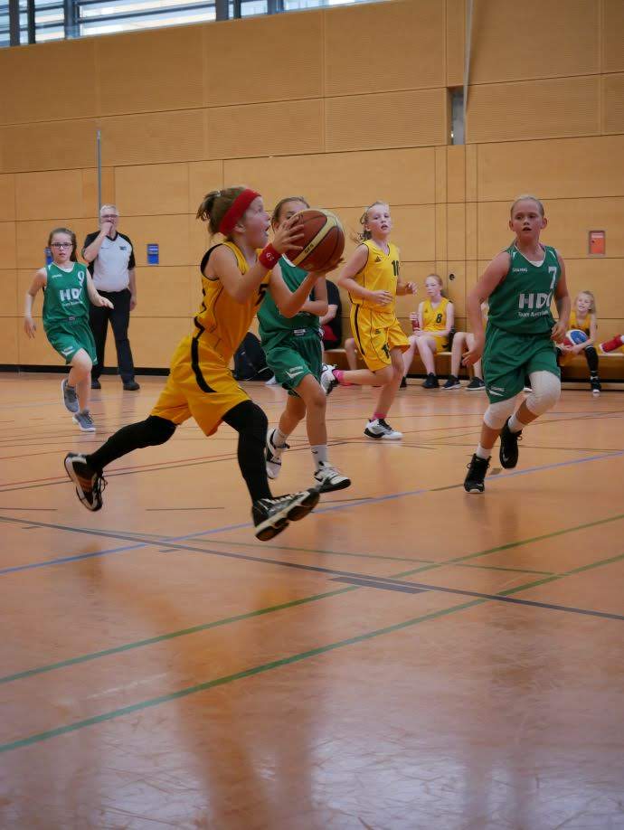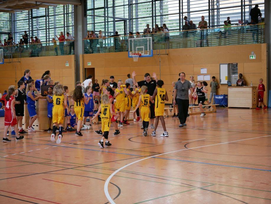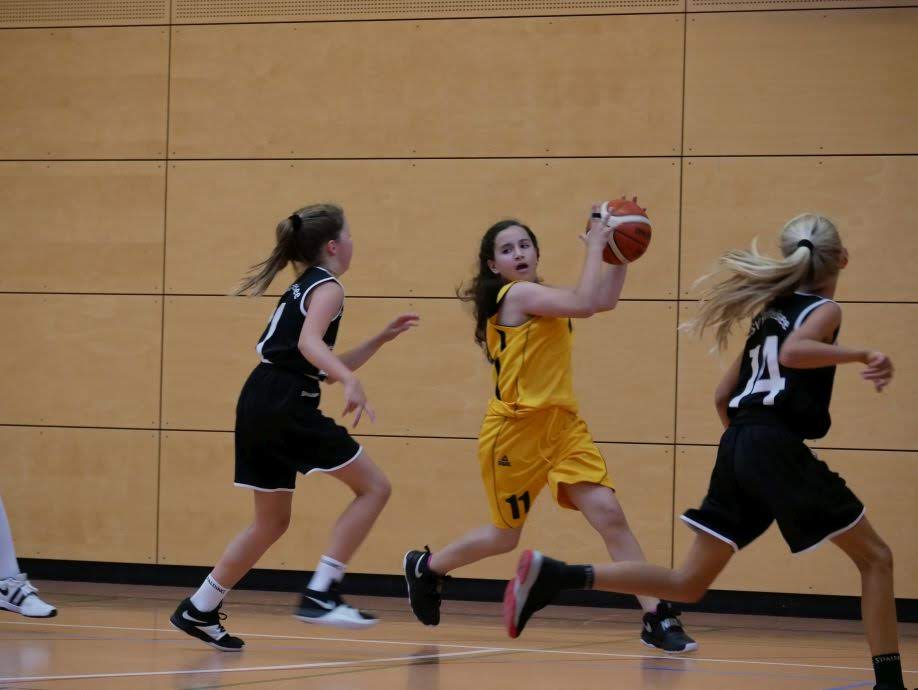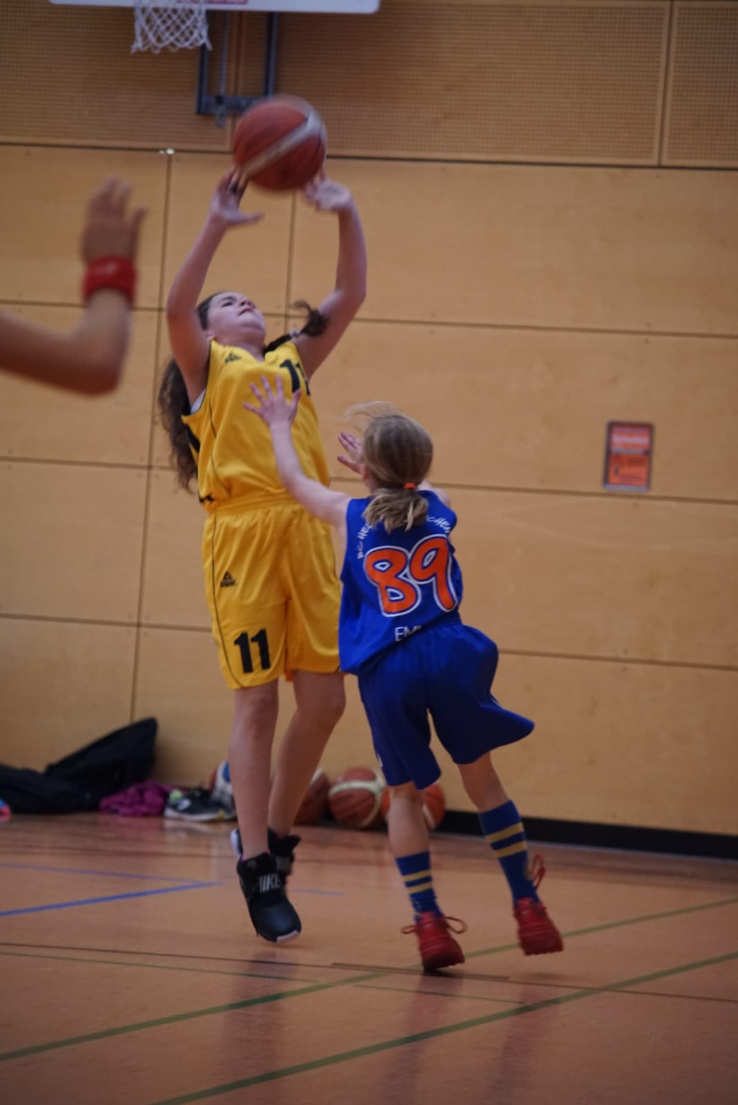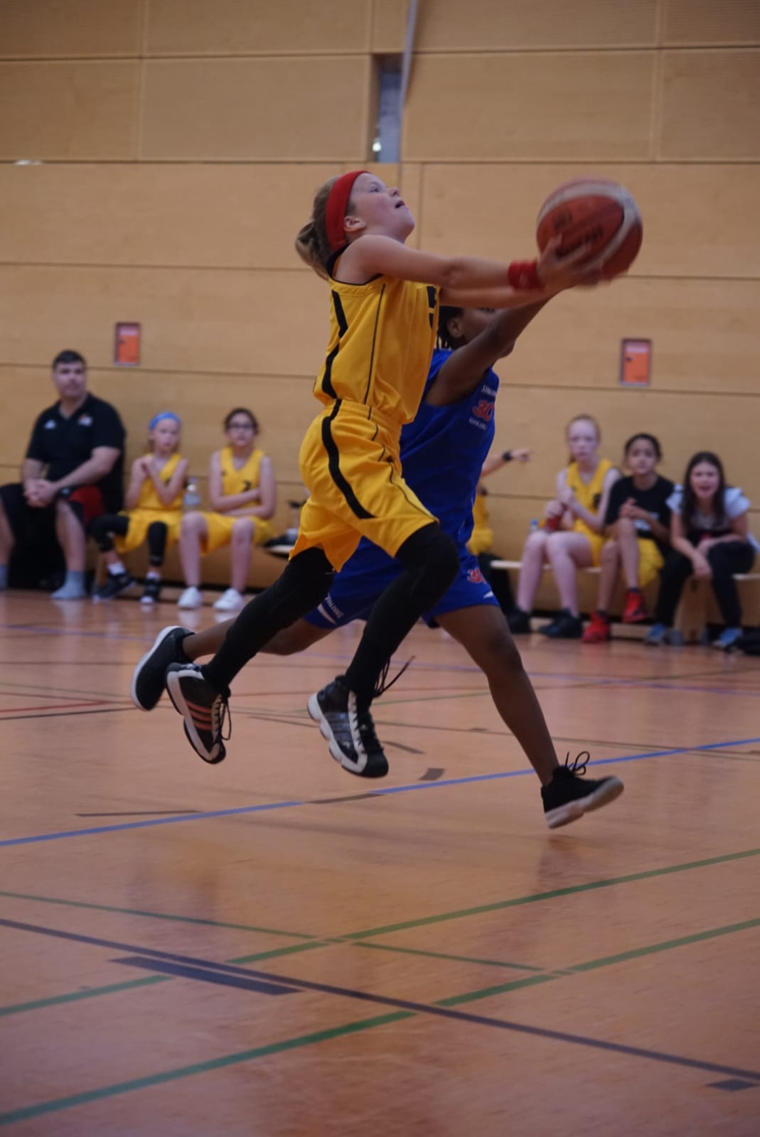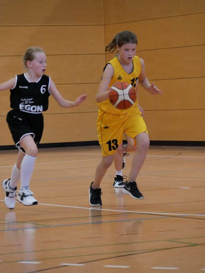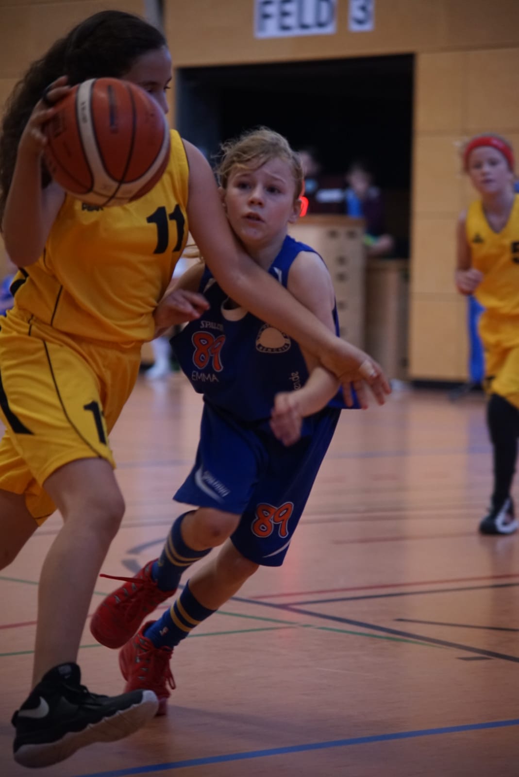 5 weibliche u12 Teams traten an und im ersten Match ging es gleich gegen den Gastgeber, die sogenannten "Hellgirls". So traten sie auch auf, bissig und kämpferisch, was unser Team erstmal ein bißchen überraschte. Die Hellenen gingen in Führung, wir konnten uns in den zweiten 10min aber herankämpfen und, eingeleitet durch lange Pässe von Sophie, durch zwei gut gespielte Fastbreaks 11:6 gewinnen. Aber diese ersten 20min kosteten schon viel Kraft. Im zweiten Spiel wartete dann der ESV Staffelsee, die durch ein sehr ausgeglichenes Teamplay beeindruckten. Wir hatten es dann auch am Anfang schwer und lagen schnell mit 8 Punkten hinten. Penelope und Judith konnten sich aber doch immer mal wieder im "1 gegen 1" durchsetzen und punkten. Unsere Großen, Aliya und Ajla, holten sich immer mehr Rebounds. Am Ende mußten wir uns aber 12:22 geschlagen geben.
