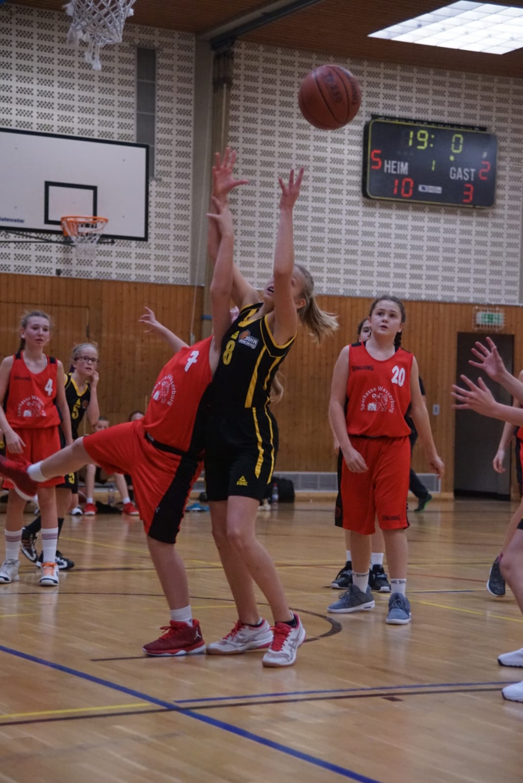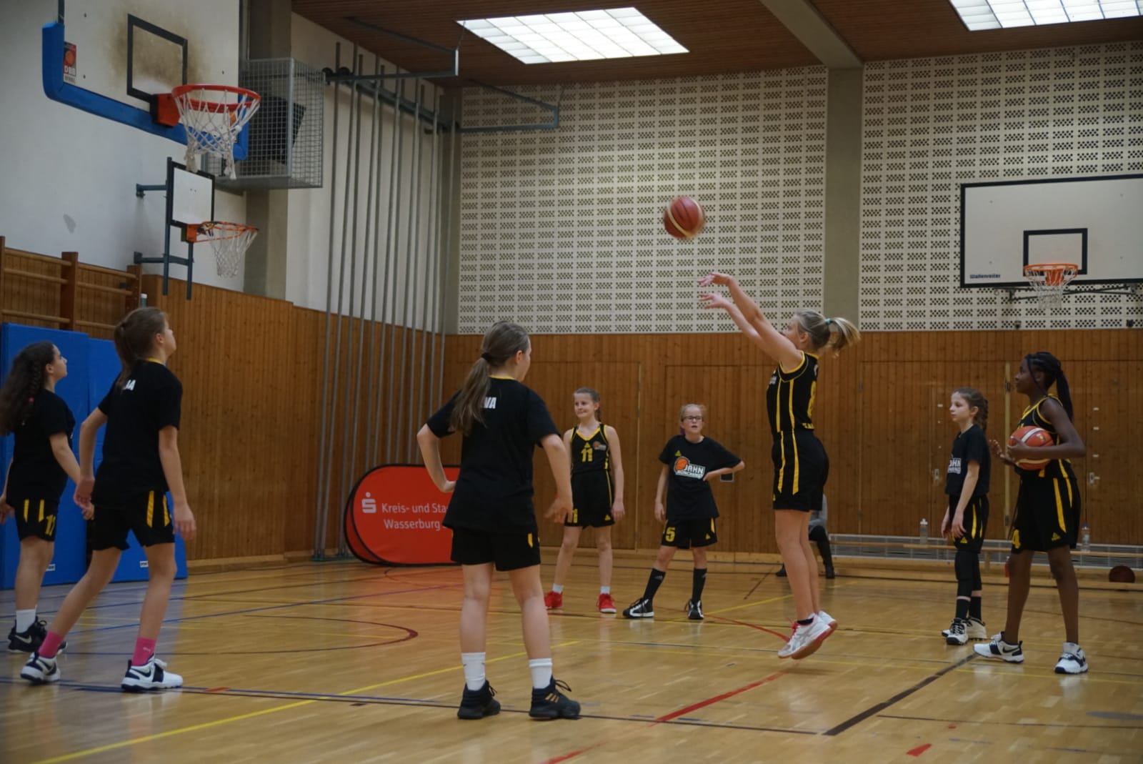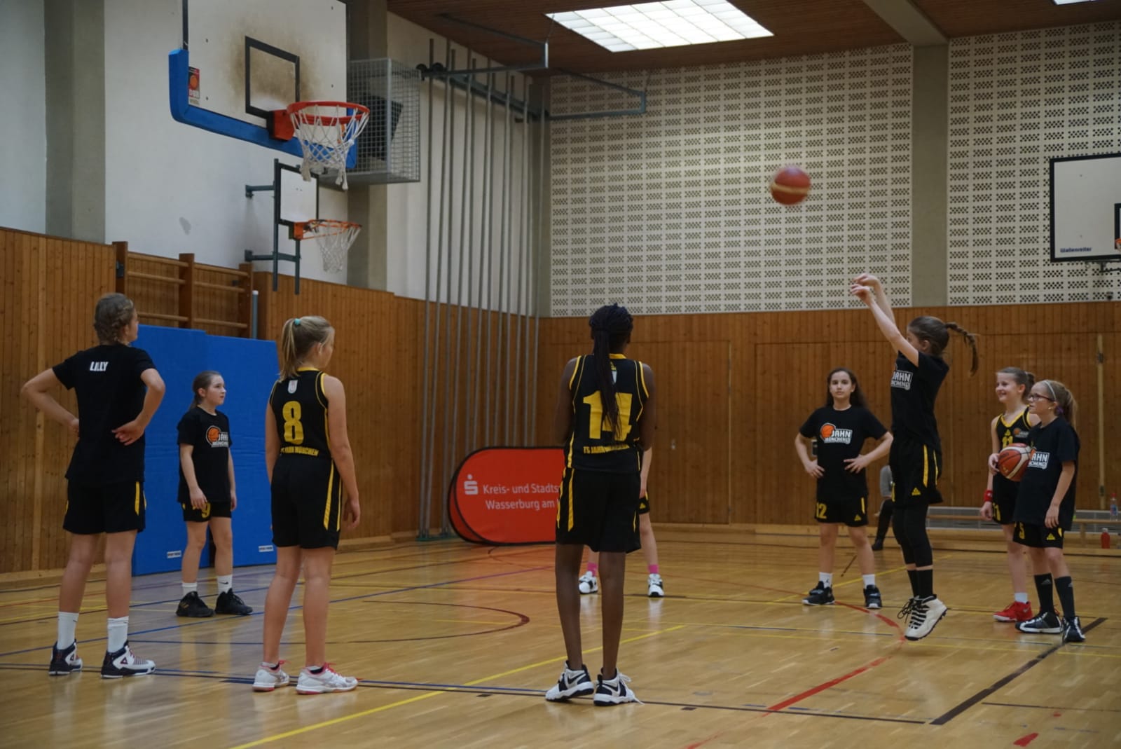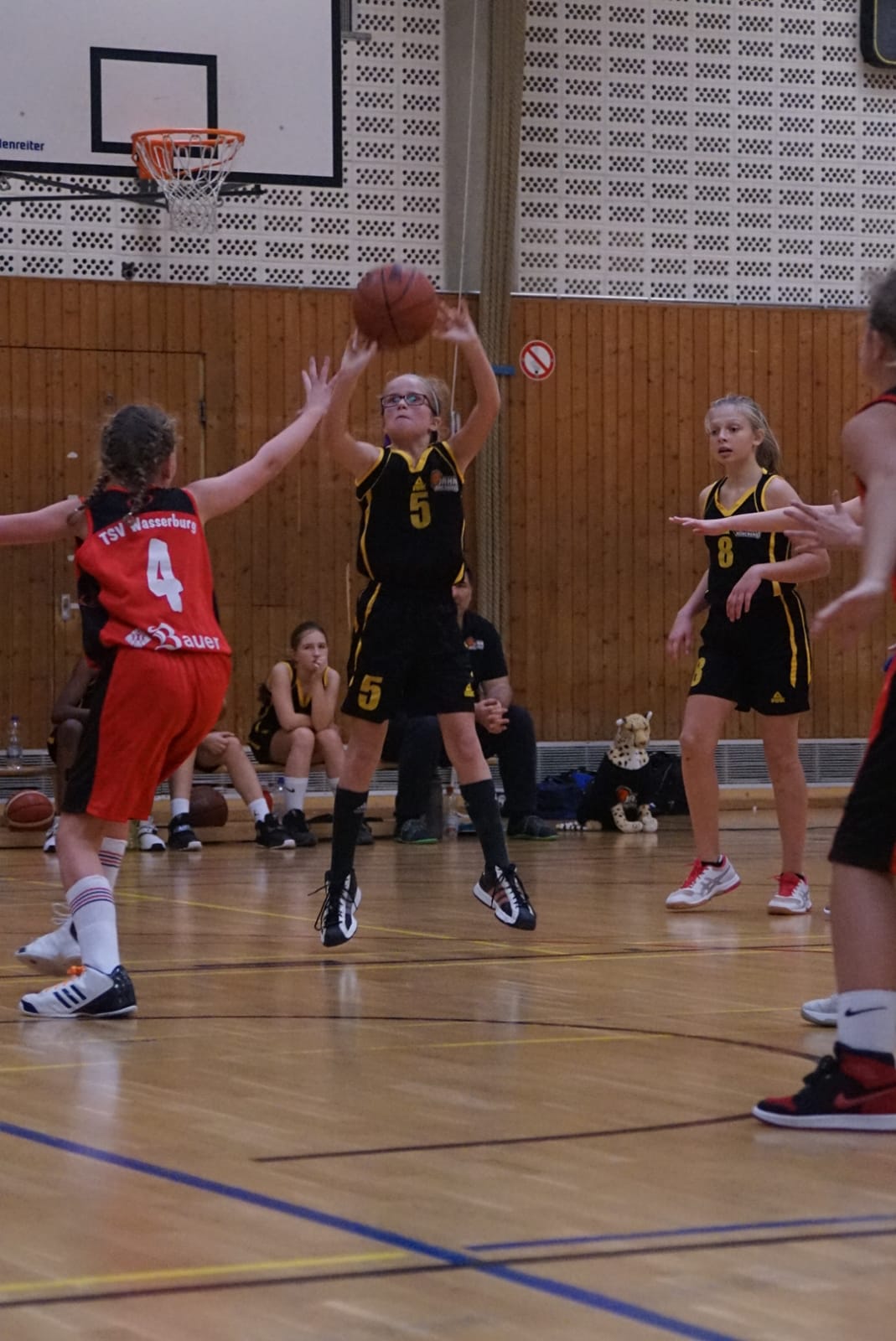 Als Zweiter reiste die u12 weiblich zum ungeschlagenen Tabellenführer Wasserburg an, da war die Favoritenrolle klar verteilt. Doch so klar war das Spiel dann nicht. Jahn war mit 9 Spielerinnen angereist, die Gastgeber mit 11 in Bestbesetzung. Coach Lars hatte seinem Team die Aufgabe gegeben, den Korb zu attackieren, wann immer sich die Möglichkeit bietet. Das wurde auch ab der 1.Minute umgesetzt, so daß die Jahnlerinnen allein in den ersten 10 Minuten zehnmal an die Freiwurflinie gingen. Nur leider traf davon nur ein einziger Wurf sein Ziel, 9 gingen daneben. Mit 6:10 ging es in die erste Pause, trotzdem herrschte weiter Optimismus im Team. Der verflog dann leider schnell Anfang des 2.Viertels, als der Gastgeber einen 14:0 Lauf hinlegte. Die Topscorerin der Liga aus Wasserburg konnte sich immer wieder durchsetzen, die Hilfe in der Jahn Defense klappte noch nicht.