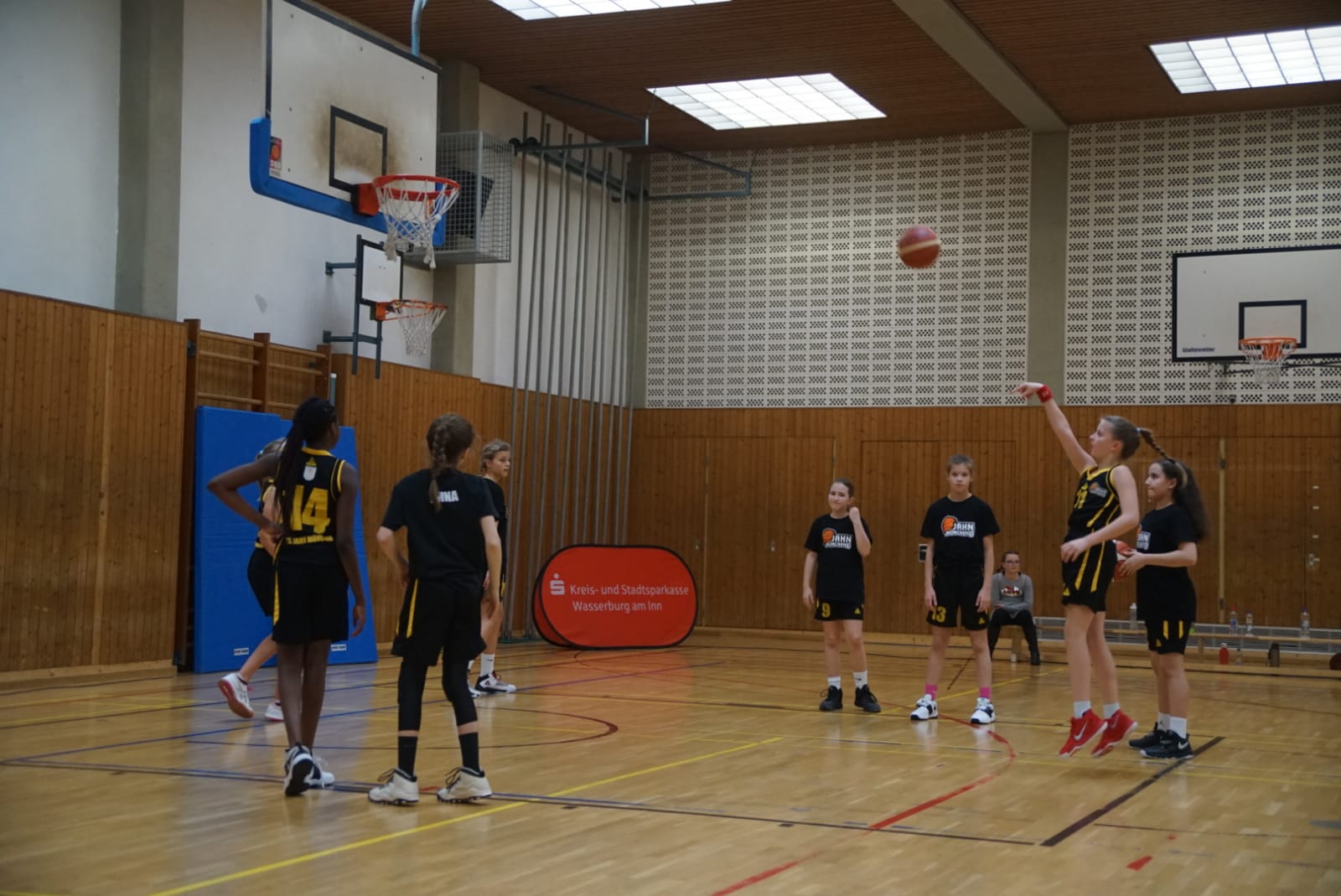 Nach einer Auszeit antwortete Captain Anna frech mit einem Dreier und zeigte, daß man dieses Spiel noch nicht aufgegeben hatte. Jetzt ging es wieder hin und her, ganze 12 Freiwürfe erarbeitete sich das Team bis zur Halbzeit und konnte davon wenigstens 4 verwandeln. 22:34 nach dem 2.Viertel, das hörte sich noch machbar an. Aber in der zweiten Halbzeit konnte der Gastgeber den Vorsprung weiter ausbauen, trotz großem Einsatz unserer Jahn Mädls. Das Spiel als Team lief jetzt besser, es wurde mehr gepasst und der freie Mitspieler gesucht. Auch Judith fing jetzt an zu punkten und Julia, Ajla und Anna streuten weitere Dreier ein. Im letzten Viertel nochmal alles gebeben und so endete das Spiel mit 56:69 doch einigermaßen klar für die Wasserburger. Aber größtenteils sahen die Zuschauer ein spannendes Spiel auf Augenhöhe.