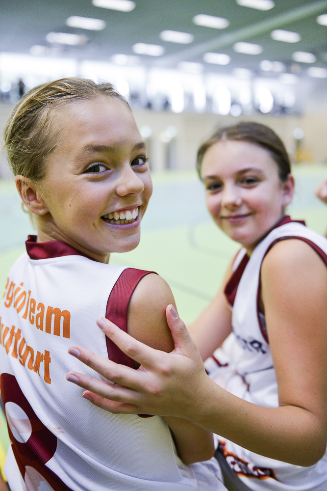 Nun ist das Turnier Geschichte und wir wollen der BSG Ludwigsburg zum Turniersieg gratulieren. Herzlichen Glückwunsch! In 2 Spielen die nicht hätten spannender sein können, verwiesen sie Alba Berlin (nach Sudden death!) und das Regioteam Stuttgart (zwischenzeitlich führte Stuttgart knapp zweistellig im Spielverlauf) auf die Plätze 2 und 3. Spannend machte es Jahn München, die in jeder ersten Halbzeit gut mithielten, denen dann jedoch die Tiefe fehlte um die 3 Spitzenteams an Siegen zu hindern. Tolle Szenen kamen auch vom Würzburger Team, die wie unsere Mädchen auch sehr früh in der Vorbereitung stecken und somit den eingespielteren Teams den Vortritt ließ. Alle Coaches betonten die Wichtigkeit des aktuellen Standes, den sie nun von ihrer Mannschaft wussten.