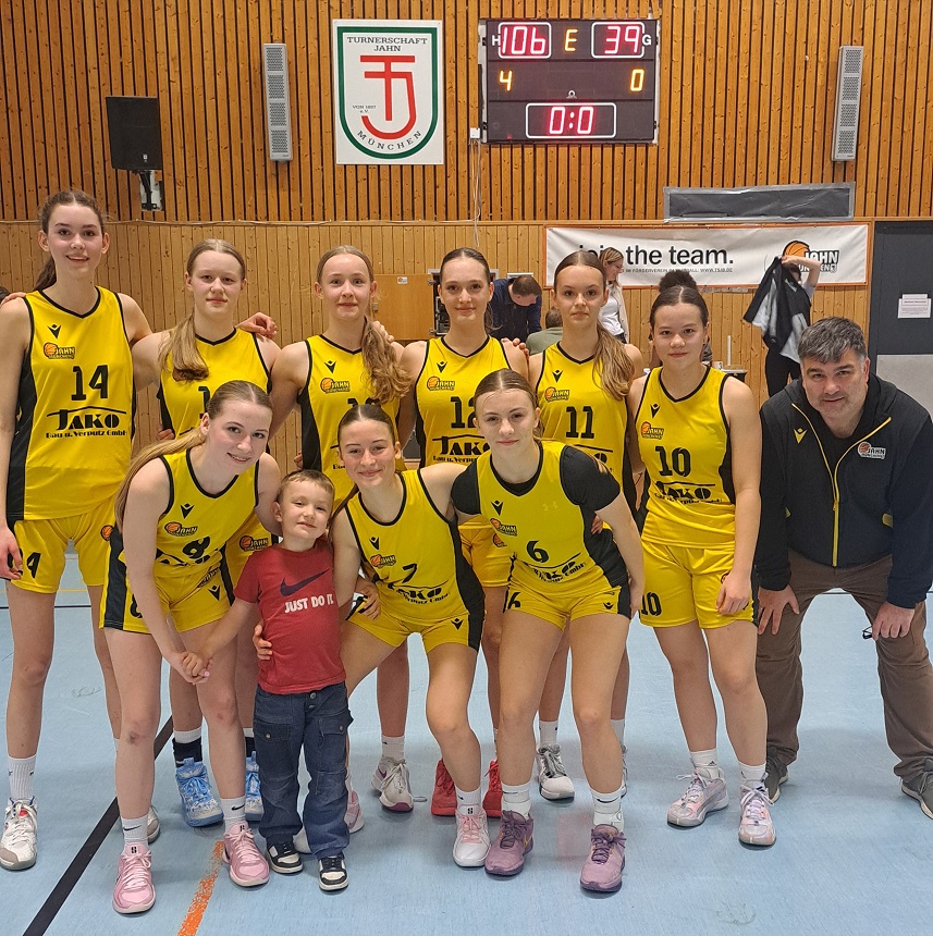Business as usual in der U16-Bayernliga: alle dürfen gleich viele Minuten spielen, alle punkten, manchmal muss jemand den Kuchen für den hundertsten Punkt mitbringen (diesmal Theresa Brücklmeier), 106:39 im Stadtduell gegen die Hellenen.