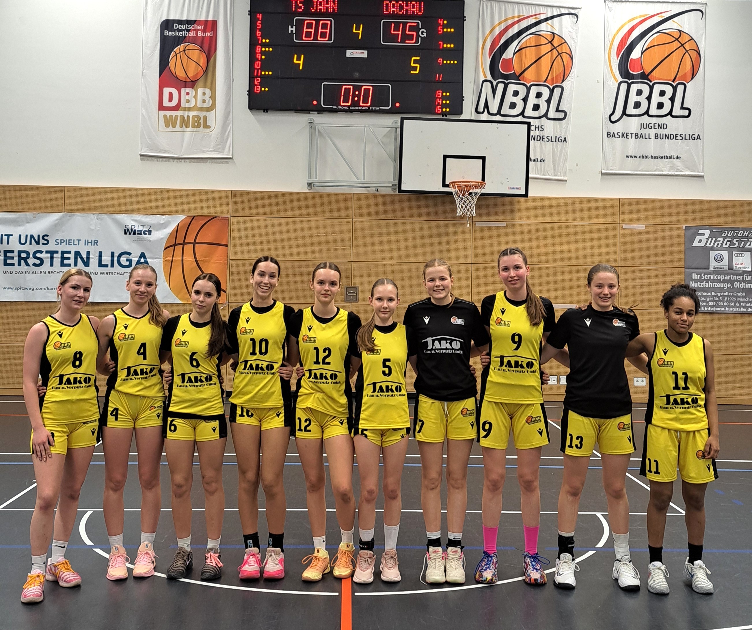 Entsprechend gut vorbereitet gingen die Jahn-Mädels in die Partie, das Ganze versprach Meisterschafts-Niveau! Das Auftaktviertel zeigte auf, dass beiderseits an der Defense noch zu arbeiten sei (25:17), dann aber kamen die Gastgeber immer besser in den Modus „fleißige, gelbe Bienchen“ und ließen viertelweise nur noch neun und vier Pünktchen zu, 72:30 der Zwischenstand nach dreißig Minuten, 93:45 am Ende.